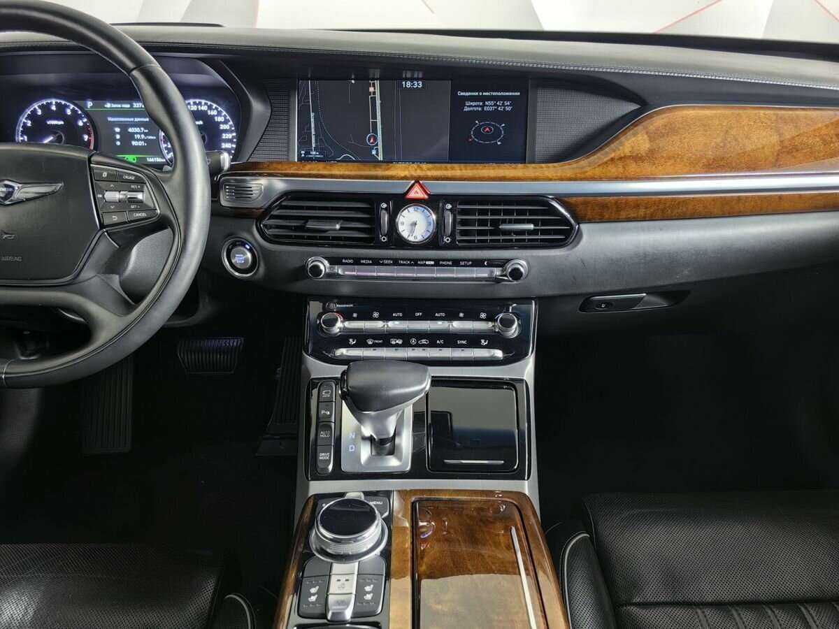 Genesis G90 оснащён двигателем Бензин 3.3 л, КПП — Автоматическая, привод — Полный, кузов — Седан.
